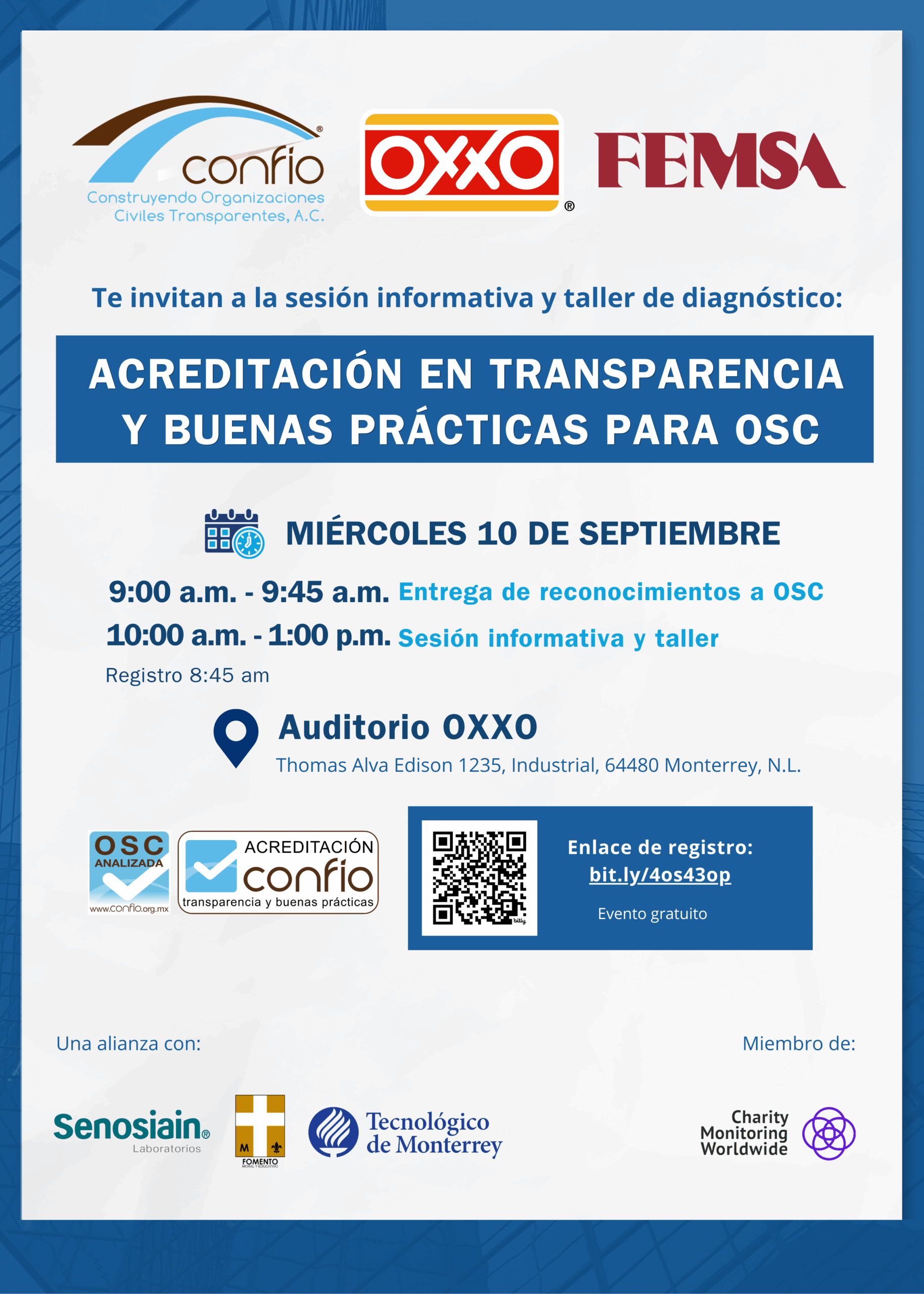 9:00 a.m. – 1:00 p.m 📍Auditorio OXXO, Thomas Alva Edison 1235, Industrial, 64480 Monterrey, N.L.