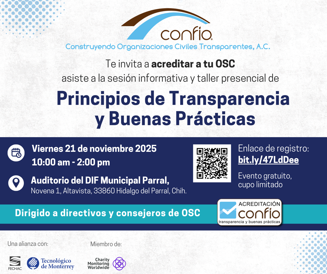 - Taller presencial Cd. Parral “Acreditación en Transparencia y Buenas Prácticas para OSC”